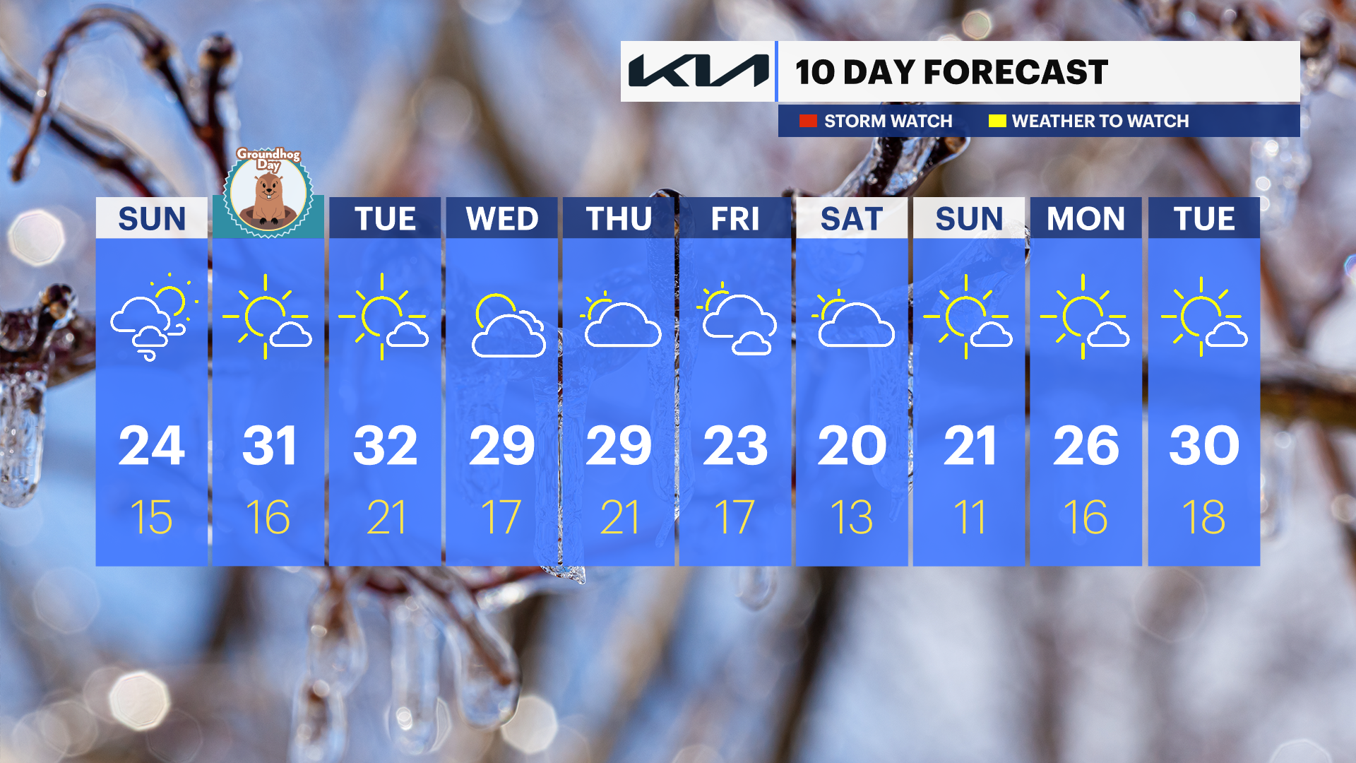 Cold air is firmly in control for the week ahead, with plenty of sunshine but very little warmth to go around. Gusty winds early on will make it feel even colder, especially the next couple of days, before winds ease slightly midweek. Daytime highs generally stay near or just above freezing, and while most days are dry, there is a small chance for snow to end the week. The cold intensifies heading into next weekend, with some of the chilliest temperatures of the stretch.
