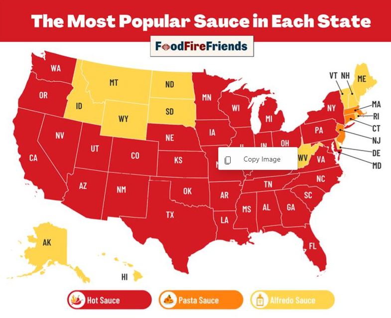 The study also revealed that the most searched-for sauce in the U.S. is hot sauce.