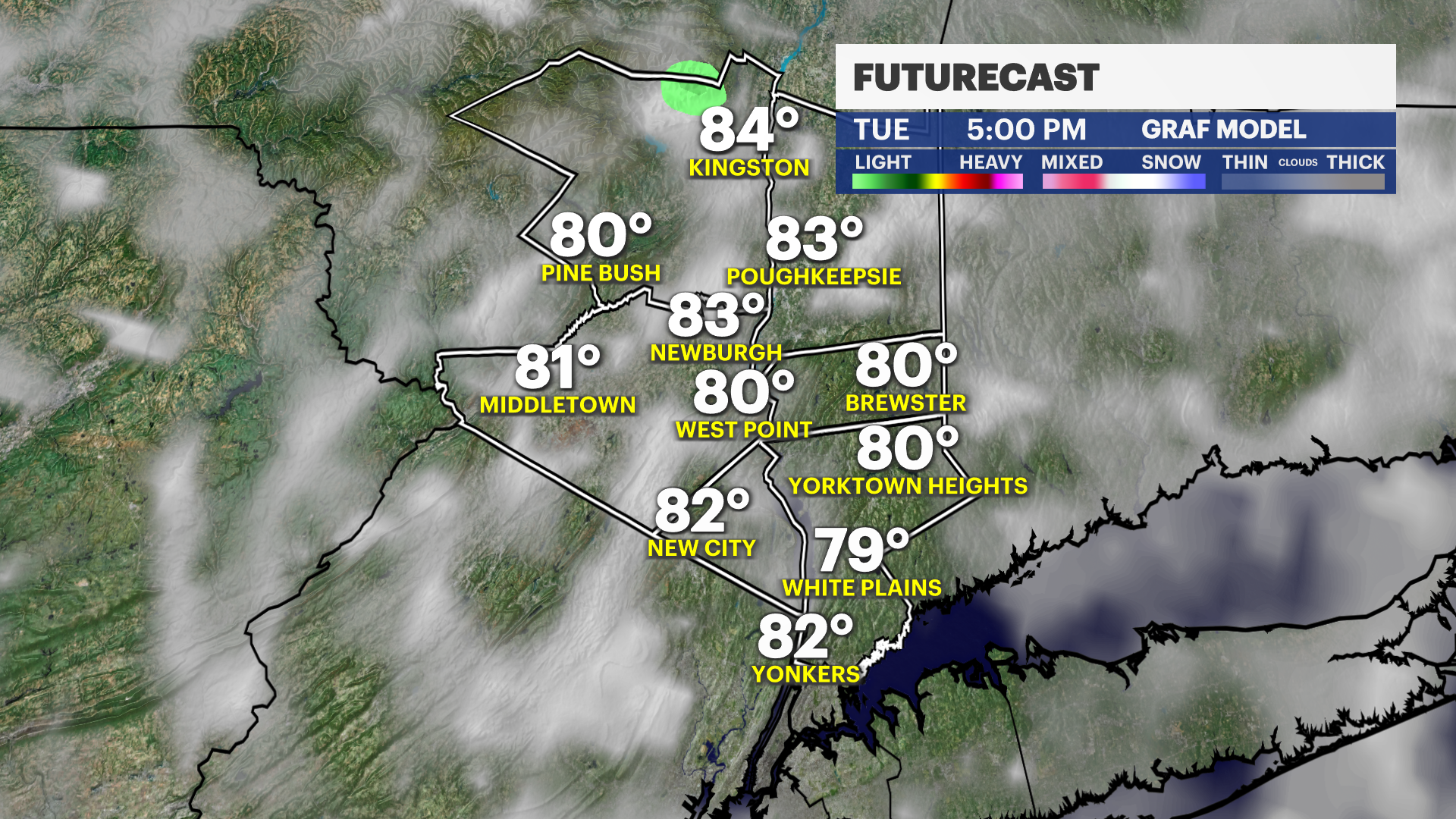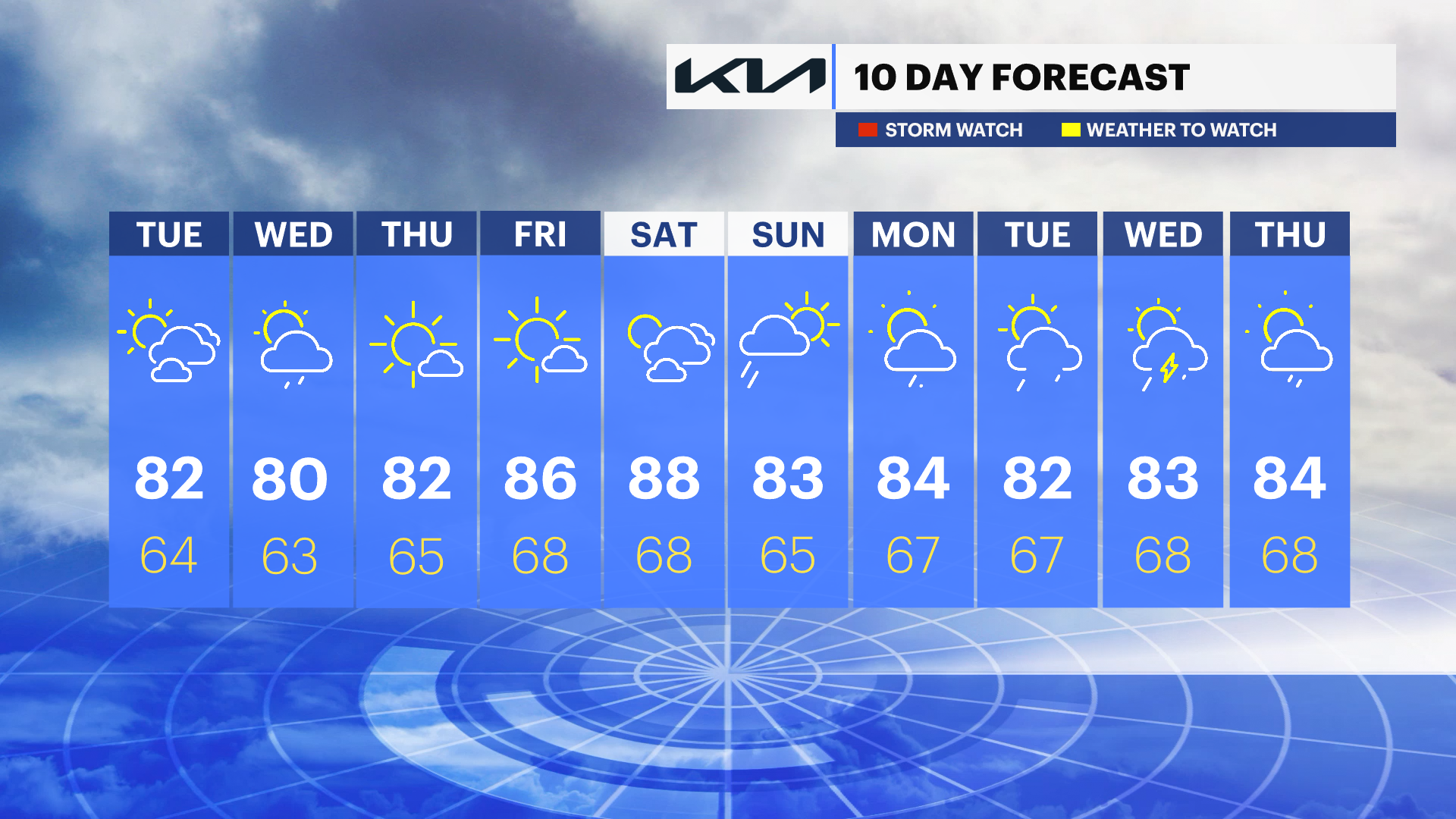 TUESDAY: Sun and clouds. Highs around 82. Lows near 64.