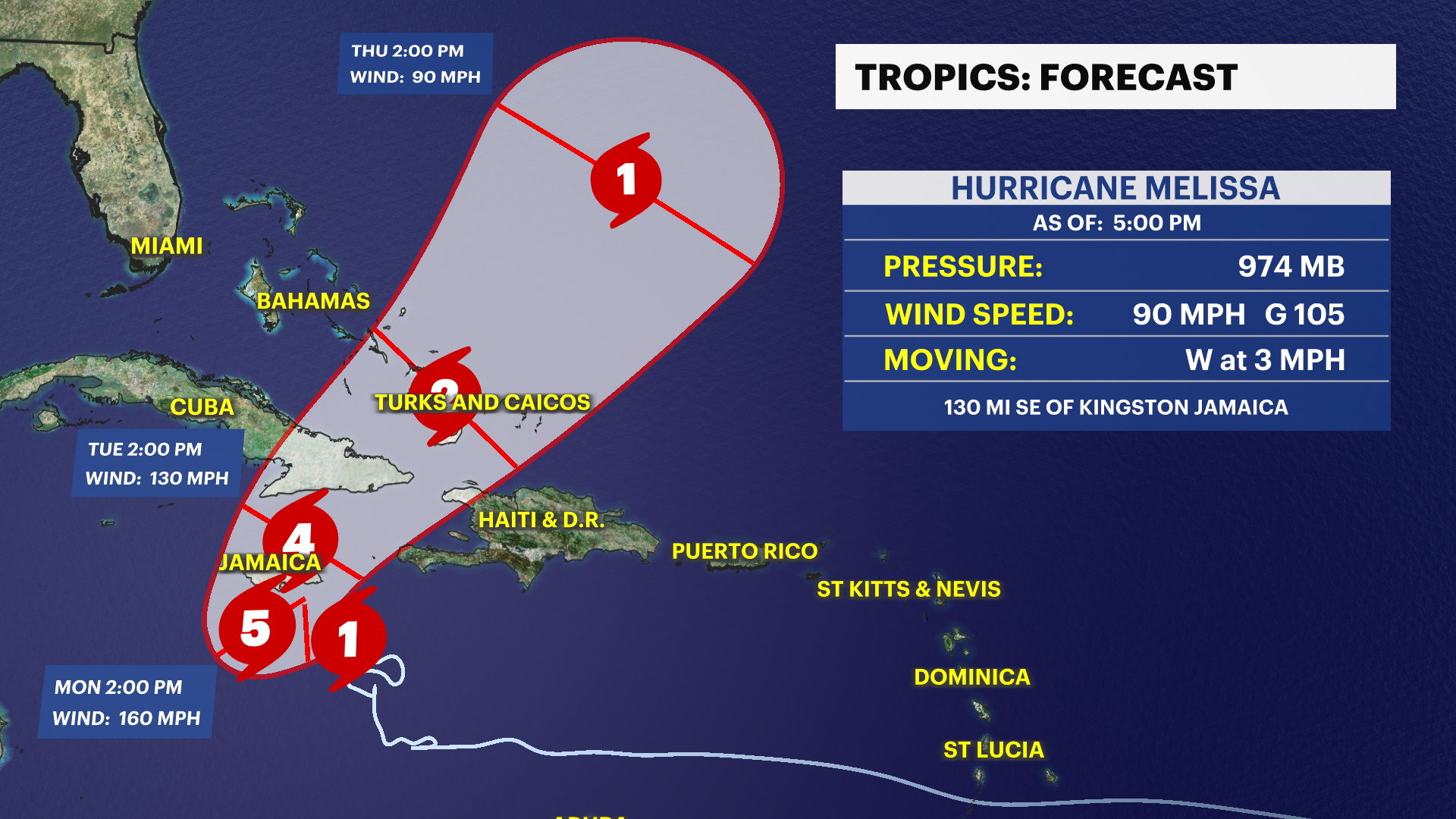 TROPICAL UPDATE: Tropical Storm Melissa continues to be a strong, powerful and slow-moving storm battering the Caribbean. It is forecast to become a major hurricane over the next few days. The forecast track, as of now, does not call for any direct impacts to the continental U.S.