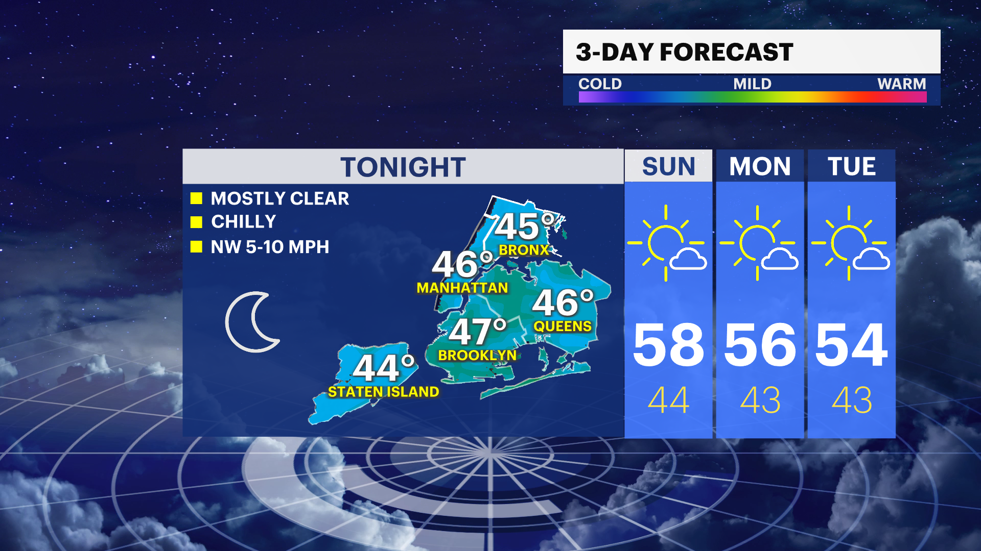 SUNDAY: Similar to Saturday. Highs in the upper 50s. Mix of sun and clouds.