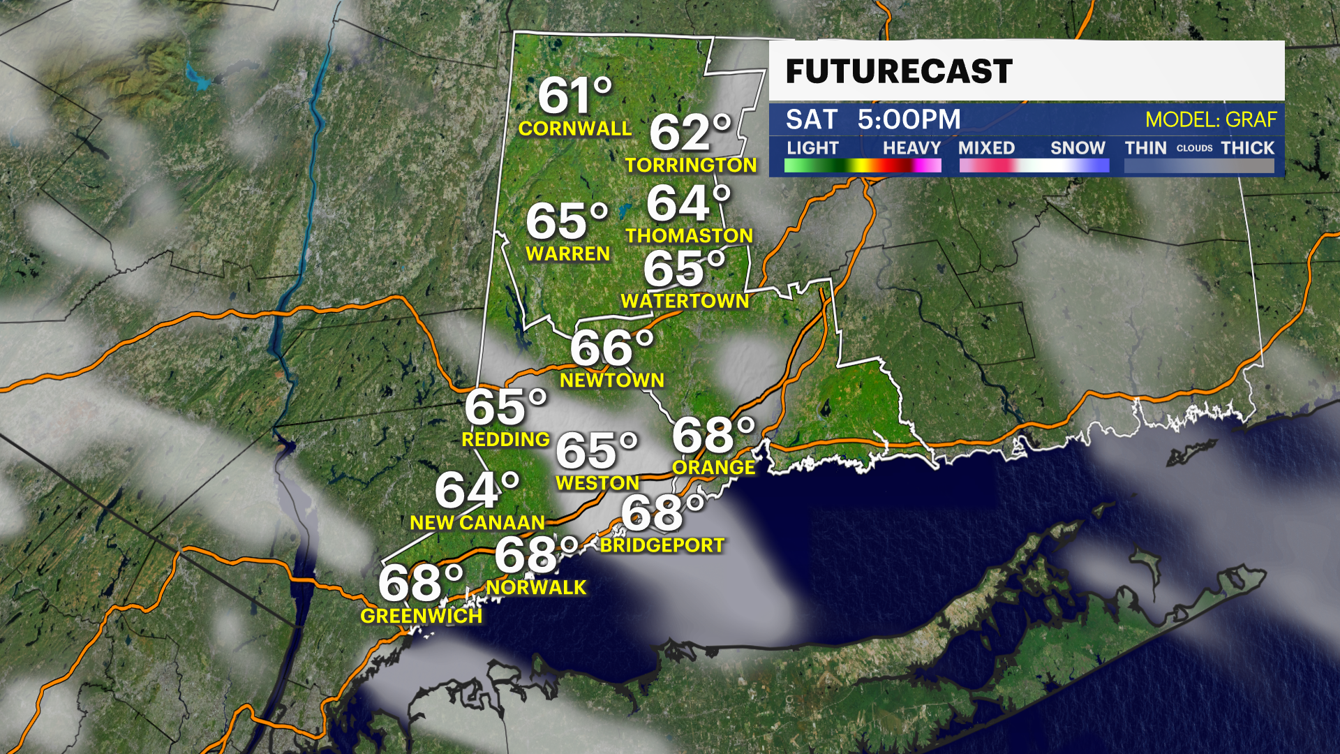 SATURDAY: Mostly sunny, breezy and a bit milder. High of 69.