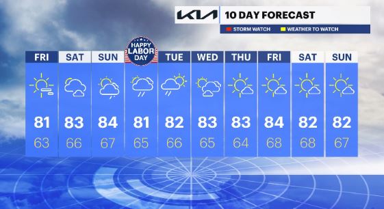 WHAT'S NEXT: Amazing weather continues tomorrow and into Saturday with humidity and cloud cover slowly creeping in through the Labor Day Weekend with Labor Day not looking the greatest.