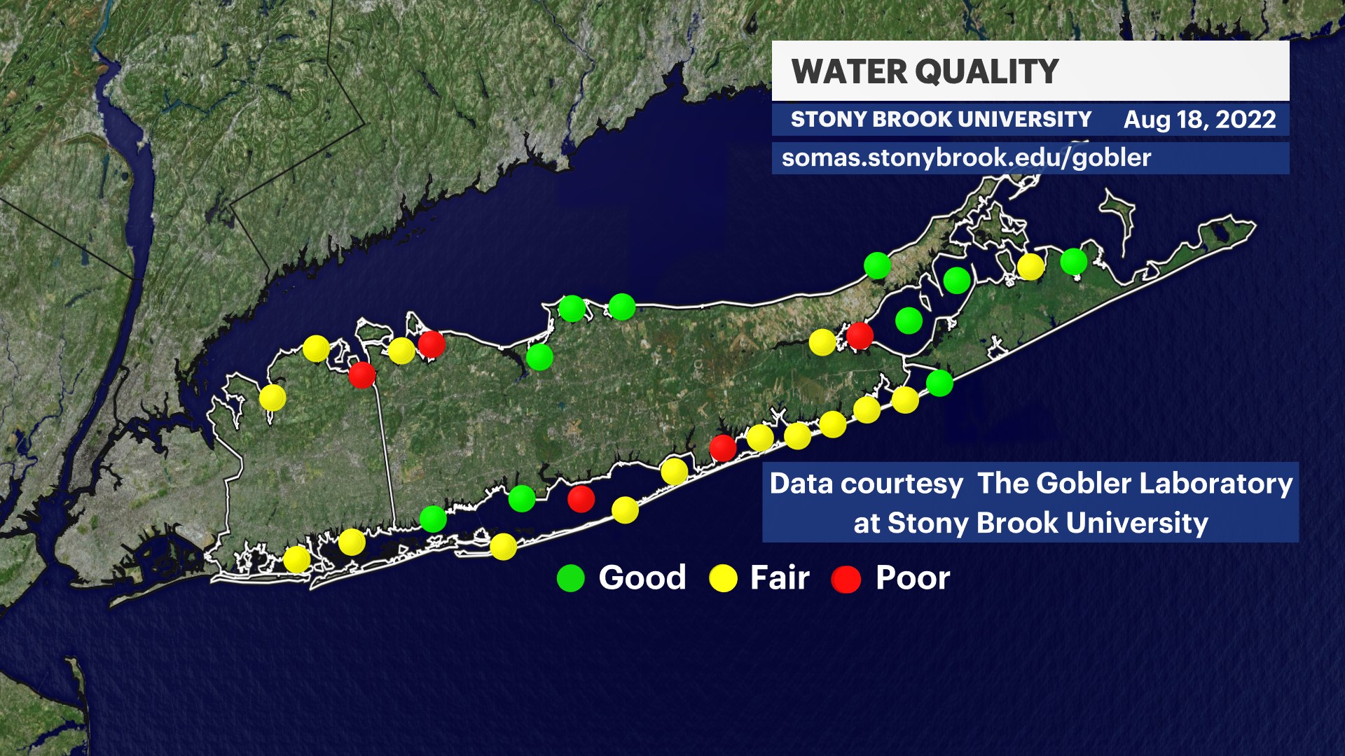 poor water on the North Shore at Cold Spring Harbor and Northport Harbor.
