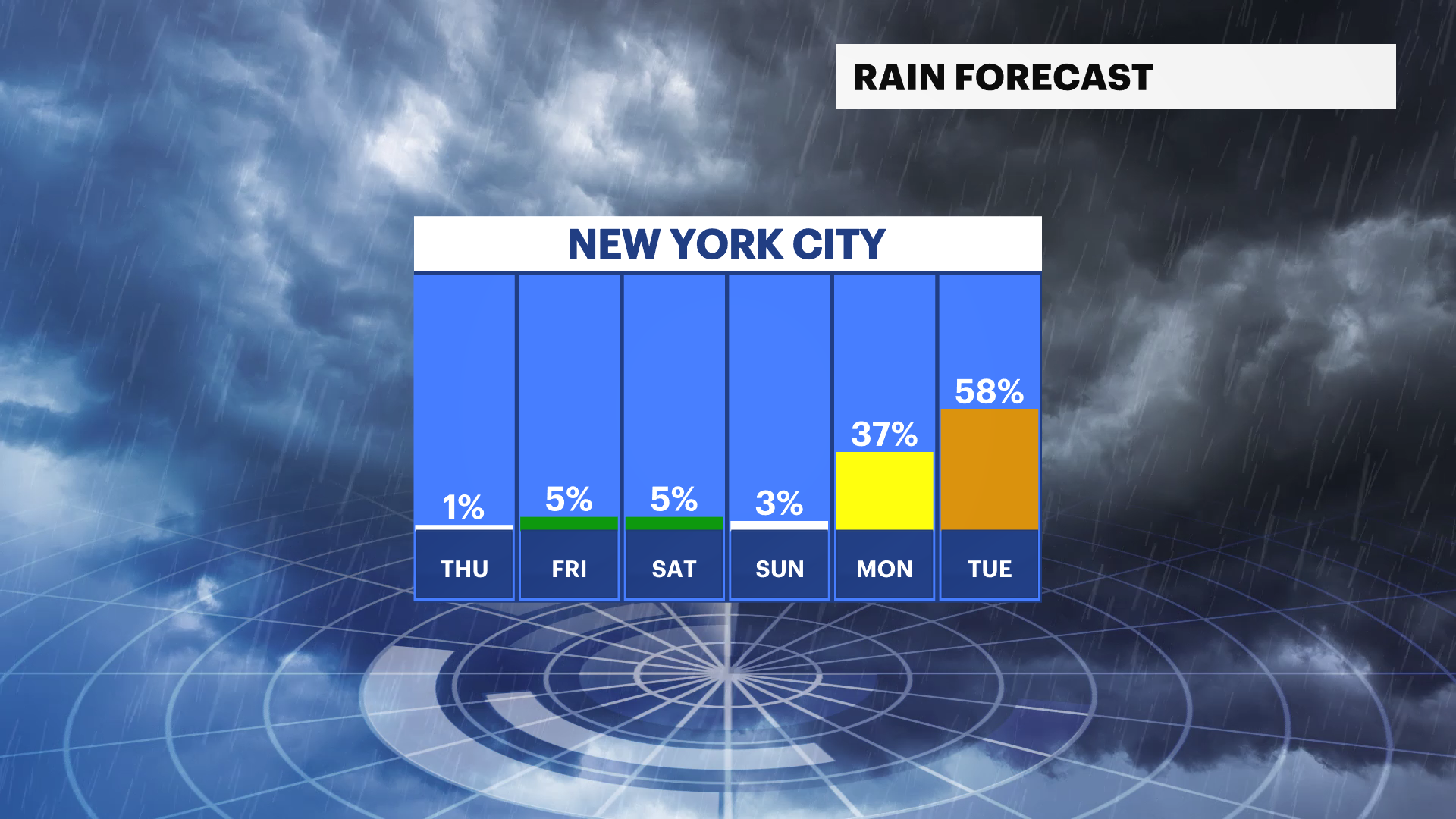 TUESDAY: A chance of showers. Cooler. Highs near 78. Lows around 67.
