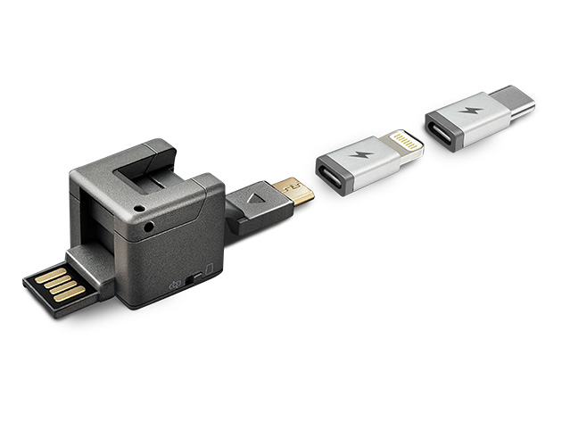 The smallest all-in-one mobile solution carries eight smartphone essentials right at your fingertips through a USB port. It also comes with a built-in micro-SD card reader that supports up to 128GB of memory.