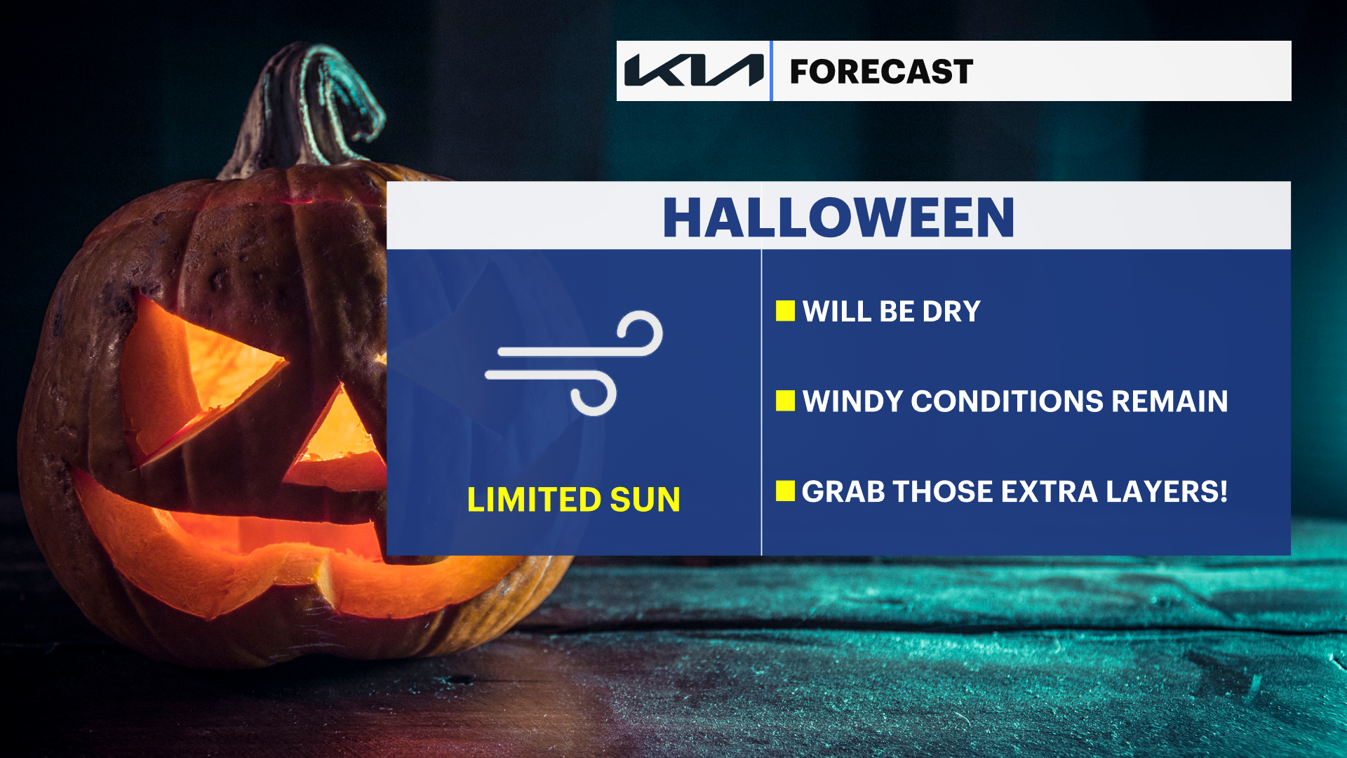 A wind advisory goes into effect Friday afternoon and evening, so be sure to bundle up when taking the kids out trick-or-treating.