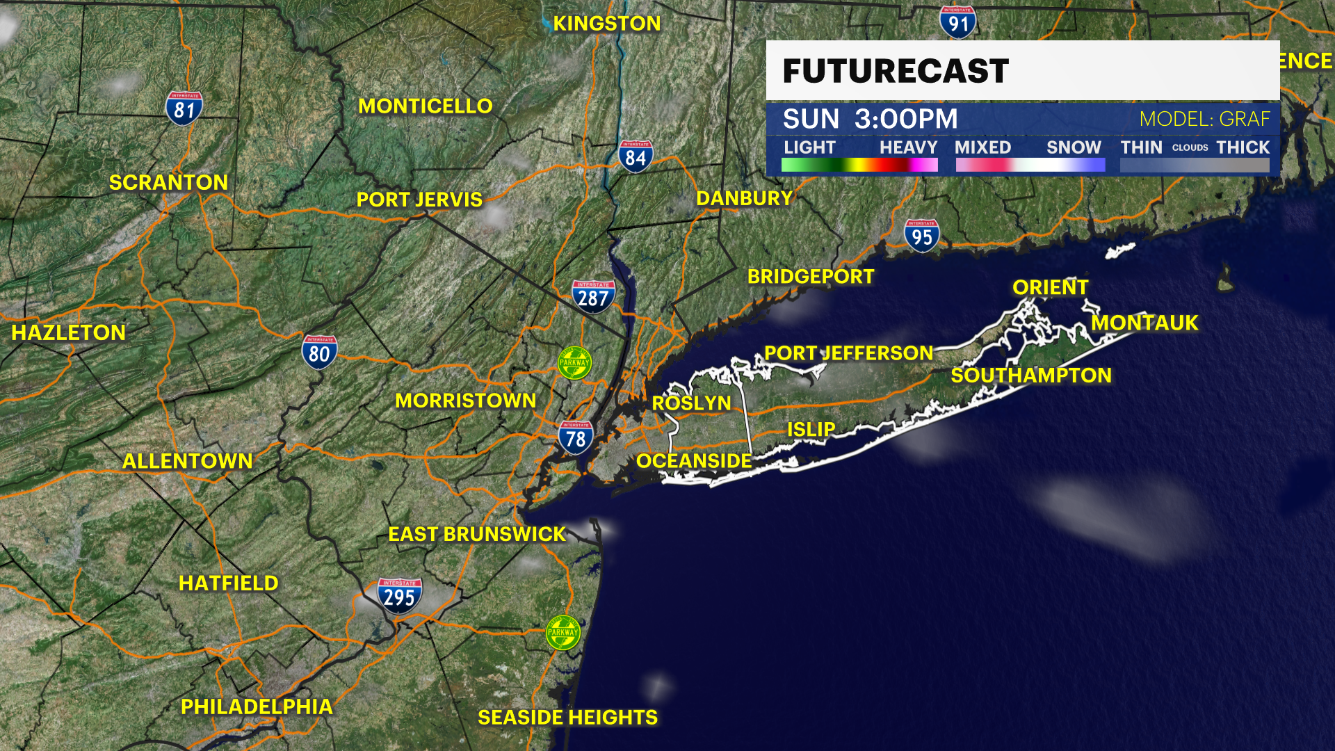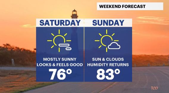 SUNDAY: Mostly sunny, a little more humid. Highs: mid 80s. Low 60s.