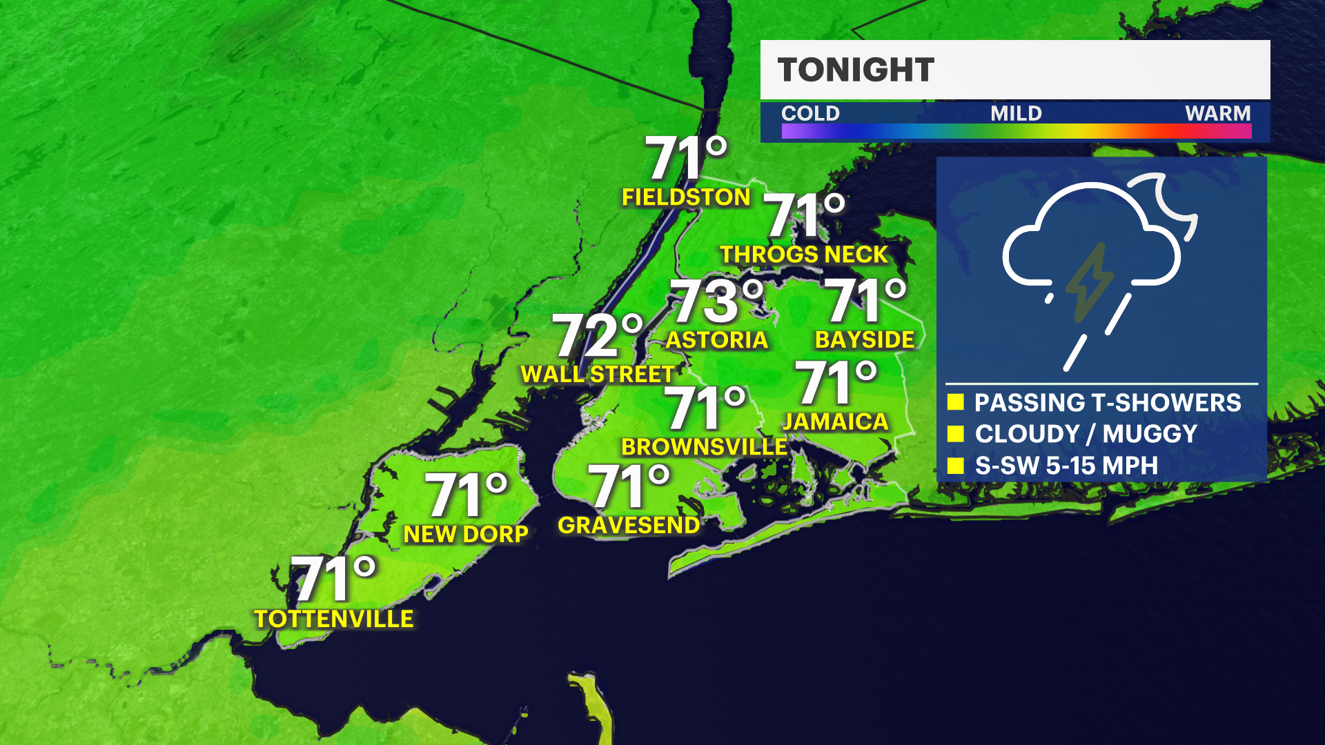 Overnight: Scattered thundershowers could be heavy at times. Lows near 71.