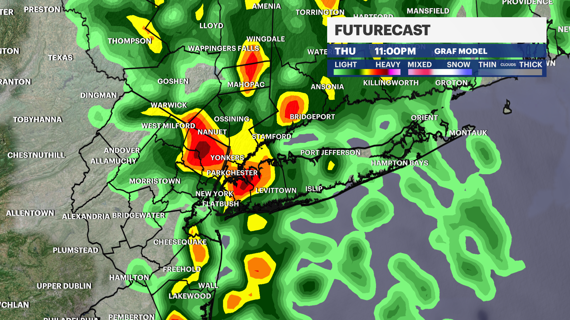 News 12 Storm Watch Team meteorologist Sam Augeri says the chance for thunderstorms and brief heavy rain will be early Thursday evening.