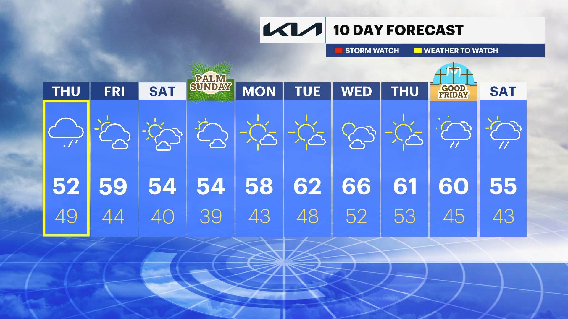 There will be a patchy fog and drizzle overnight before more showers and possible thunderstorms come in for Thursday.